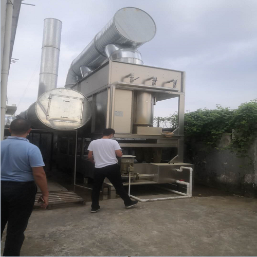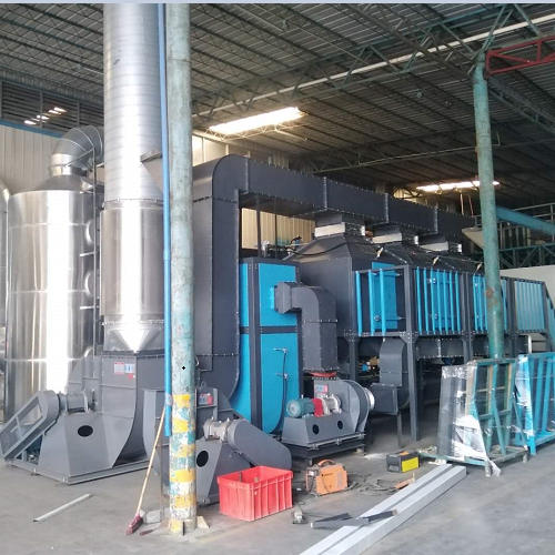 RCO催化燃燒設備內設加熱室,啟動加熱裝置,進入內部循環,當熱氣源達到有機物的沸點時,有機物從活性炭內跑出來,進入催化室進行催化分解成CO2和H2O,同時釋放出能量。利用釋放出的能量再進入吸附床脫附時,此時加熱裝置停止工作,有機廢氣在催化燃燒室內維持自燃,尾氣,循環進行,直至有機物從活性炭內部分離,至催化室分解。有機物得到催化分解處理。