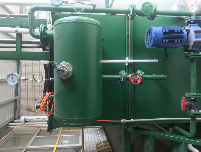溶氣系統主要有溶氣罐、儲氣罐、空氣壓縮機、高壓泵組成,溶氣罐是系統中關鍵的部分,其作用就是實現和空氣的充分接觸,加速空氣溶解。