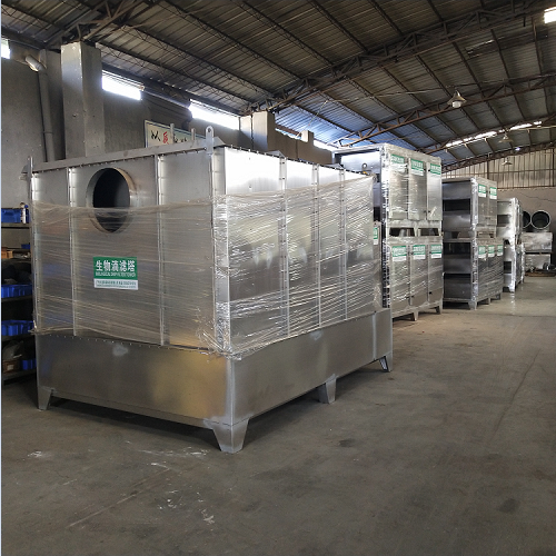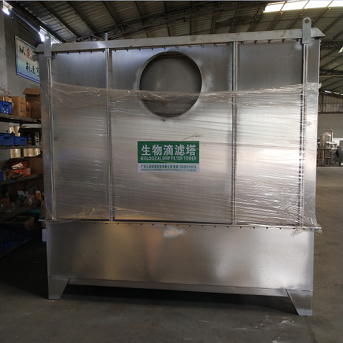 由廣東久藍環保科技有限公司產生制造,生物滴濾塔,根據客人需求制作的污水廠生物除臭塔,生物除臭設備,不銹鋼201材質制作,生物滴濾塔的主要工作原理是利用箱體內的生物菌發酵,通過培養生物菌,讓其成長,然后通過吸收工業中和污水廠工作中生產的除臭,異味,通過釋放出二氧化碳和水的過程。
