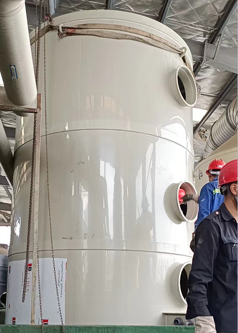 5月5日,廣東久藍(lán)環(huán)保在東莞進(jìn)行電子廠廢氣處理,該項(xiàng)目屬于電子廠廢氣處理的改造項(xiàng)目,其改造目的是更換噴淋塔2個(gè),通過噴淋洗滌塔對電子廢氣進(jìn)行洗滌,然后通過填料凈化廢氣達(dá)到排放目的。