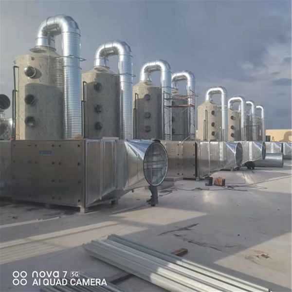客戶案例:制品廠廢氣處理,噴淋塔加活性炭吸附箱,等離子凈化器處理工藝,整套設(shè)備。